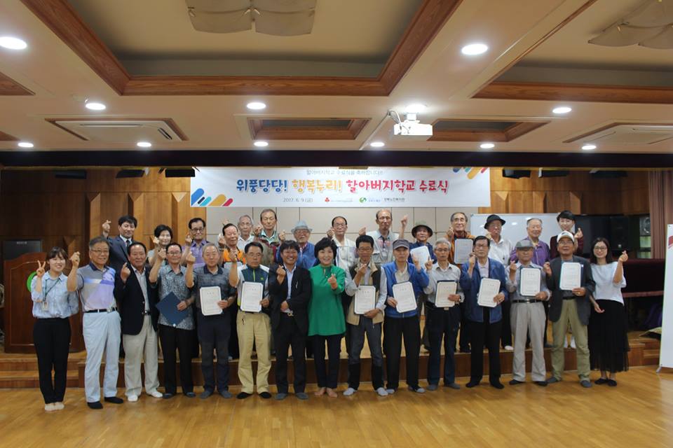 위풍당당!행복누리!할아버지학교의 마지막 미술수업을 끝맺고 수료식을 진행하였습니다. 하반기활동에서는 할아버지학교 벽화로드를 진행할 예정입니다!
