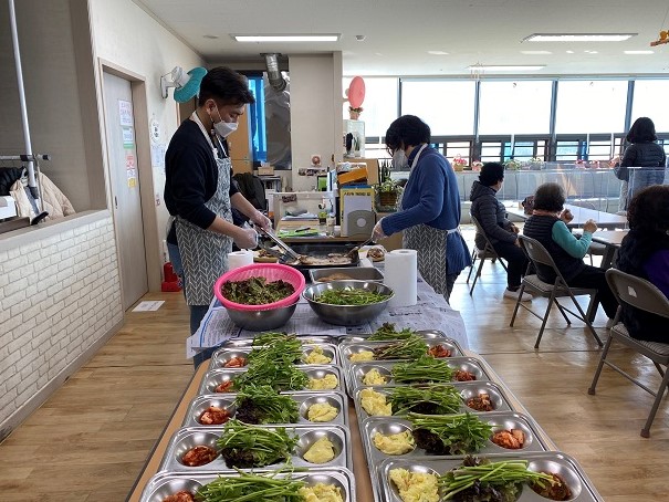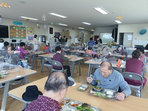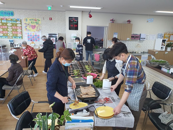 *사 업 명 : 점심 특별식 제공 *사업기간: 2021. 1. 27.(수) / 1.28.(목) *내 용 저희 상록수재단 산하기관인 상록수기억학교에서 이용어르신들을 위해 삽겹살과 미나리 및 각종 채소를 제공하여 맛있는 점심식사를 27일과 28일 양일 간 제공하였습니다. 코로나 19 감염예방을 인해 칸막이가 설치된 테이블에서 거리두기의 일환으로 자리배치를 함으로서 안전한 식사가 이루어지도록 하였습니다. |