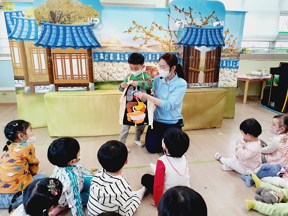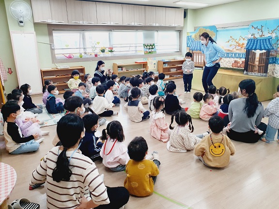 -행사명 : 이야기 극장 톡톡(방귀쟁이 며느리) -일 자 : 2021. 3.31(수) -내 용 : 월배어린이집 친구들과 인형극을 관람하였습니다. 코로나19로 인해 두 타임으로 나누어 거리두기를 실천하며 인형극을 관람하였고 ‘방귀쟁이 며느리’라는 재미있는 내용으로 아이들이 더 즐겁게 관람하였습니다. |