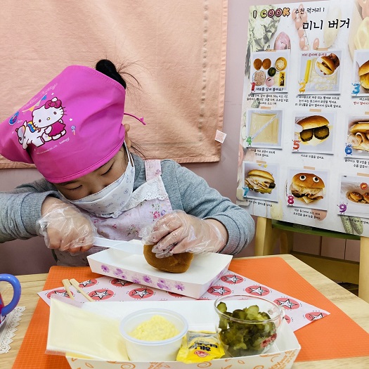 -행사명 : 요리활동 “미니햄버거 만들기” -사업일시 : 2021. 03. 25. (목) -내 용 : 미니햄버거 만드는 법을 알아보고, 나만의 맛있는 햄버거를 만들어서 가정으로 가져가보았습니다. 직접 만들어 먹으면서 즐거움도 느끼고 햄버거를 더 맛있게 먹어보는 경험이였습니다. |
