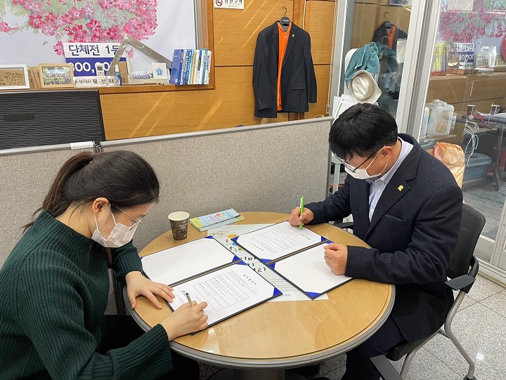 -행사명 : 보건대학교 봉사동아리 ‘송림로타랙트’ 업무 협약 -일 자 : 2021. 03. 18. (목) -내 용 : 복지관과 대구보건대학교 ‘송림로타랙트’가 어르신의 건강한 취미·여가생활 및 안정된 삶을 지원하기 위하여 상호 협력하고자 업무 협약을 체결하였습니다. 2021년 3월부터 11월까지 사랑배달부(정기적으로 독거어르신에게 전화와 방문을 통해 어르신들과 대학생들이 오손도속 이야기를 나눌 수 있는 프로그램), 행복누리농장 도우미(복지관에서 진행되는 행복누리농장에 함께 방문하여 방법을 배우고 도와주며 어르신의 취미·여가 생활을 함께 할 수 있는 프로그램), 전화안부(방문에 거부감이 있지만 말벗이 필요로 하는 어르신들을 중점으로 진행하여 어르신들의 불안감과 외로움을 해소시킬 수 있는 프로그램) 세 가지의 분야로 나누어 복지관과 함께 프로그램을 진행하게 되었습니다. |