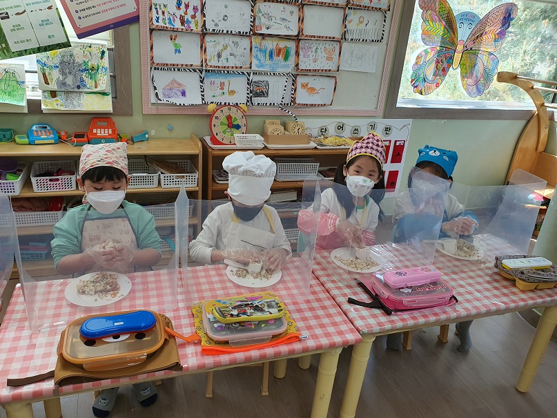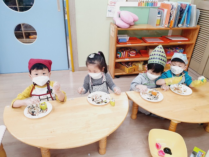 -행사명 : 요리활동(모양 주먹밥) -일 자 : 2021. 4.21(수) -내 용 : 요리활동으로 맛있는 모양 주먹밥을 만들어 보았습니다. 주먹밥 속에 들어가는 야채들을 탐색해보고 모양틀을 이용하여 재미있는 모양 주먹밥을 만들어 맛보니 야채를 싫어하는 아이들도 맛있게 잘 먹는 모습을 보였습니다. |