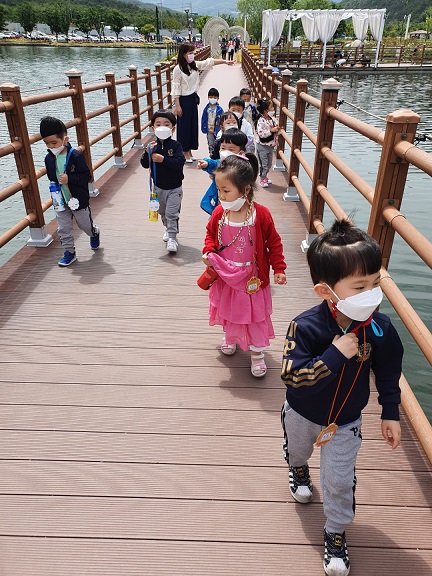 -행사명 : 옥연지 생태공원 -사업일시 : 2021.05.26(수) -내 용 : 유아반 친구들과 옥연지 생태공원에 다녀왔습니다. 공원에 있는 ‘수국’ 과 또 다른 다양한 꽃을 관찰하고 돌멩이, 물 등 자연물도 관찰할 수 있어 공원 산책에 적극적인 친구들이였답니다. |