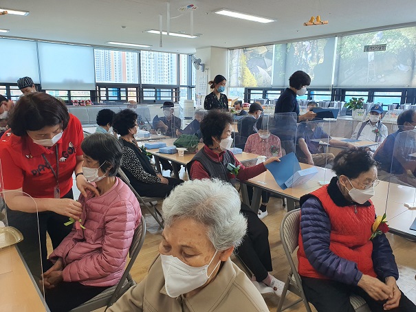 -사업명 : 5월 특별한 데이 [어버이날_고맙습니다, 사랑합니다.] -사업기간 : 2021.05.06(목) ~ 2021.05.07(금) -내 용 : 어버이 날을 맞이하여 한결같이 상록수기억학교의 든든한 버팀목이 되어주시는 어르신들께 각 가정의 보호자를 대신하여 가족들의 영상을 다른 어르신들과 모두 다 같이 봄으로써 어버이날과 가족의 의미를 상기 후 어르신 개개인에게 카네이션을 달아드리고 선물증정과 함께 특별식인 오무라이스와 돈까스를 점심식사로 대접하였습니다. |