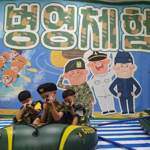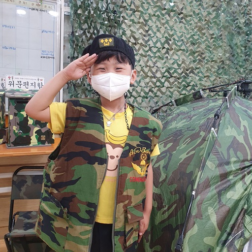 -사업명 : 스폐셜데이 “병영체험” -사업일시 : 2021.6.25(금) -내 용 : 호국보훈의 달을 맞이하여 66월 기념일의 의미를 알아보면서 국군에 대한 고마움을 알아보았습니다. 또한 직접 군인 의상을 입고 군인이 되어서 다트 총놀이, 로켓발사놀이, 보트타기 등의다양한 군인 체험 활동을 진행하면서 즐겨보았습니다.. |