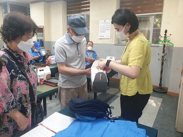 -사업명 : 노인사회활동지원사업 참여자 간담회 -사업기간 : 21.6.9.(수), 2021.6.11.(금) -내 용 : 1월부터 시작된 노인사회활동지원사업의 참여자 간의 소통의 자리를 마련하기 위하여 ‘노인사회활동지원사업 참여자 간담회’를 실시하게 되었습니다. 9일과 11일 양일간 진행된 간담회 자리에서는 코로나19로 인하여 함께 식사를 할 수는 없었지만 참여자 어르신들을 위해 준비한 다과를 나누어 주었습니다. 또한 상반기 동안 활동하면서 생긴 고충이나, 건의사항을 전달하며 노인사회활동지원사업의 개선방향에 대해 함께 의견을 나누었습니다. |
