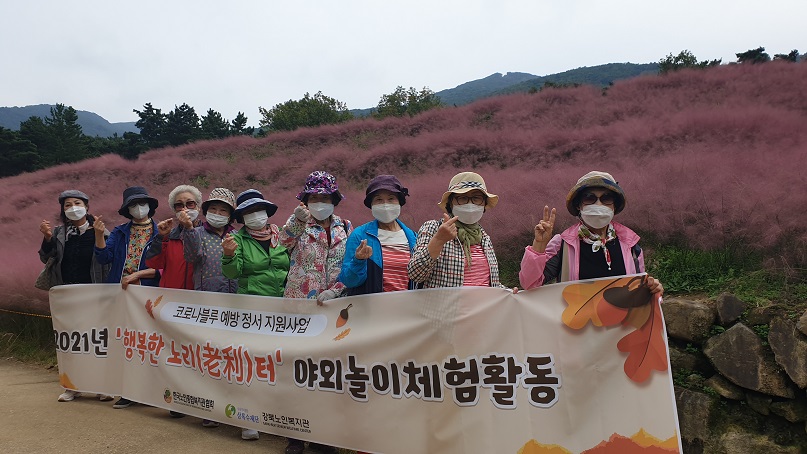 -사업명 : 코로나블루 예방 정서 지원사업 ‘행복한 노리터’ 야외놀이체험활동 2회 실시 -사업기간 : 2021. 10. 1. (금), 2021. 10. 15. (금) -내 용 : 코로나블루 예방 정서 지원사업에 참여하고 있는 어르신들과 함께 야외놀이체험 활동을 2회에 걸쳐 실시하여, 활동적이고 다양한 프로그램을 체험하면서 참여 어르신들의 궁극적인 목적(코로나블루 극복)을 달성하기 위해 칠곡숲체원과 가산수피아를 다녀왔습니다. 더불어 참여자간 친밀감과 관계성을 높이고, 다양한 체험활동과 같이 점심도 먹으면서 대화를 나누는 시간을 가지면서 참여 어르신들이 즐겁고 행복한 추억을 가지게 되었다고 하셨습니다. |