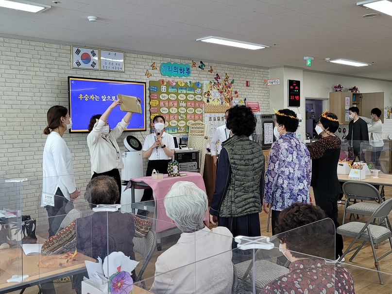 - 사업명 : 기억여행(7080추억상회) - 사업일시 : 2021. 10. 22.(금) - 내 용 : 기억학교에서는 매월 4회 진행하는 정규교과 프로그램인 기억여행을 진행하여 어르신들의 옛기억을 영상을 통하여 옛추억을 공감하는 시간을 가졌으며 공감대를 이룬 기억에 대하여 모든 종사자의 보조 아래 클라이언트가 흥미를 가질 수 있는 O, X 퀴즈와 객관식 문제를 풀어 최근 기억에 대한 지속적인 회상을 통해 인지기능을 유지하고자 하였습니다. |