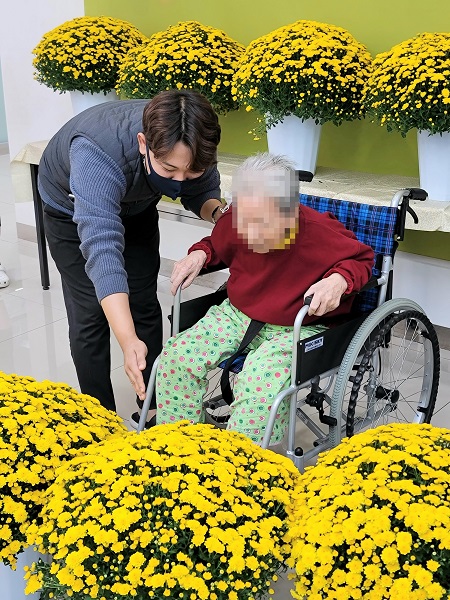 -사업명 : 실내 꽃구경&국화 체험 -사업기간 : 2021. 10. 20. (수) ~ 2021. 10. 22. (금) -내 용 : 매년 진행되던 수목원 국화축제 연계 가을나들이가 코로나로 인해 취소되며 어르신들의 아쉬운 마음을 달래고자, 실내에서 국화꽃체험을 실시하였습니다. 따뜻한 실내에 국화꽃을 만지고 관람 후 사진촬영을 진행하였습니다. 잠시나마 꽃을 통해 심리적 여유로움을 가지고 일상생활의 활력증진이 되셨길 바랍니다. |