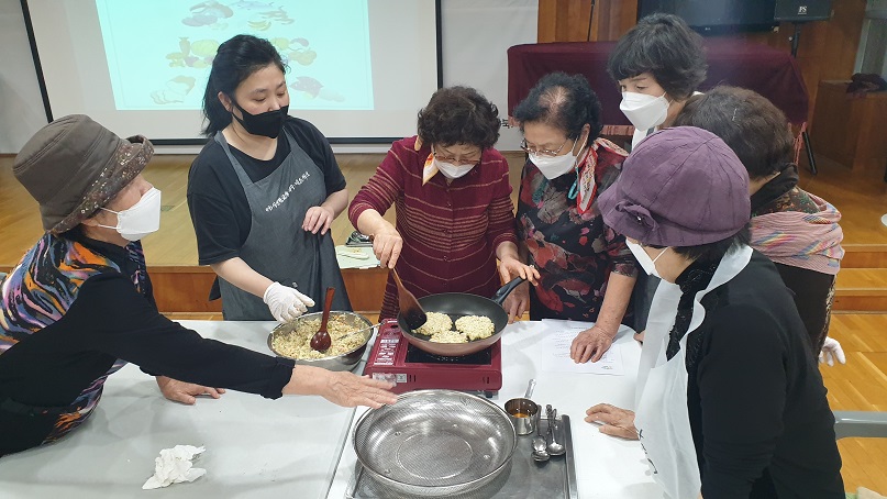 -사업명 : 식생활건강개선교실 교육 사업 실시 -일 시 : 2021. 11. 05.(금), 11. 12.(금), 11. 19. (금) -내 용 : 잘못된 식습관·식생활에 따른 영양섭취 부족 및 불균형, 노인비만 등으로 사회 경제적 비용 증가됨에 따라 바른 식생활 교육을 제공하여 건강한 노후 식생활 지원을 조성하였습니다. 이론 교육에 끝나지 않고 실습을 진행하여 몸소 체험을 실시하여 각 가정에서도 지속적으로 실행할 수 있는 시간을 마련하였습니다. |