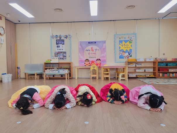 -사업명 : 설맞이 행사 -사업기간 : 2022. 01. 26.(수)~2022. 01. 28.(금) -내 용 : 우리나라의 큰 명절 ‘설날’을 맞이하여 아이들과 설날에 할 수 있는 것들을 즐겨보았습니다. 예쁜 한복을 입은 후 예절교육하기, 민속놀이 즐기기, 유과 만들기 활동을 해보았고 다양한 활동을 경험해보며 설날의 설레는 분위기를 느껴보았습니다. |