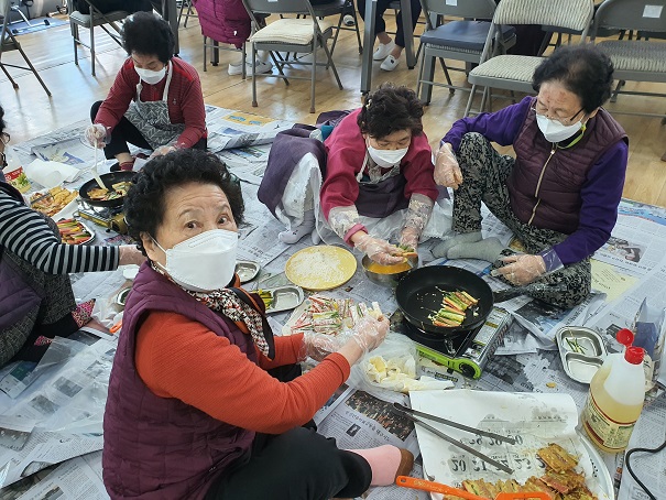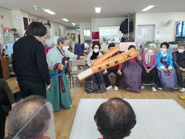 - 사업명 : 2022년 설명절 특별한 데이(그땐 그랬어흥~) - 사업일시 : 2022. 01. 28.(금) - 내 용 : 범의 해인 2022년 설날을 맞이하여 어르신들에게 세배와 덕담을 나누고 전통음식읊 어르신 스스로 만드는 활동을 함으로써 서로 정을 나누는 등 가족적인 분위기를 형성하는 화합의 장을 만드는 계기가 되었으며 전통놀이인 윷놀이를 통해 옛 기억을 회상 및 공감대를 가지는 즐거운 시간을 보냈습니다. |