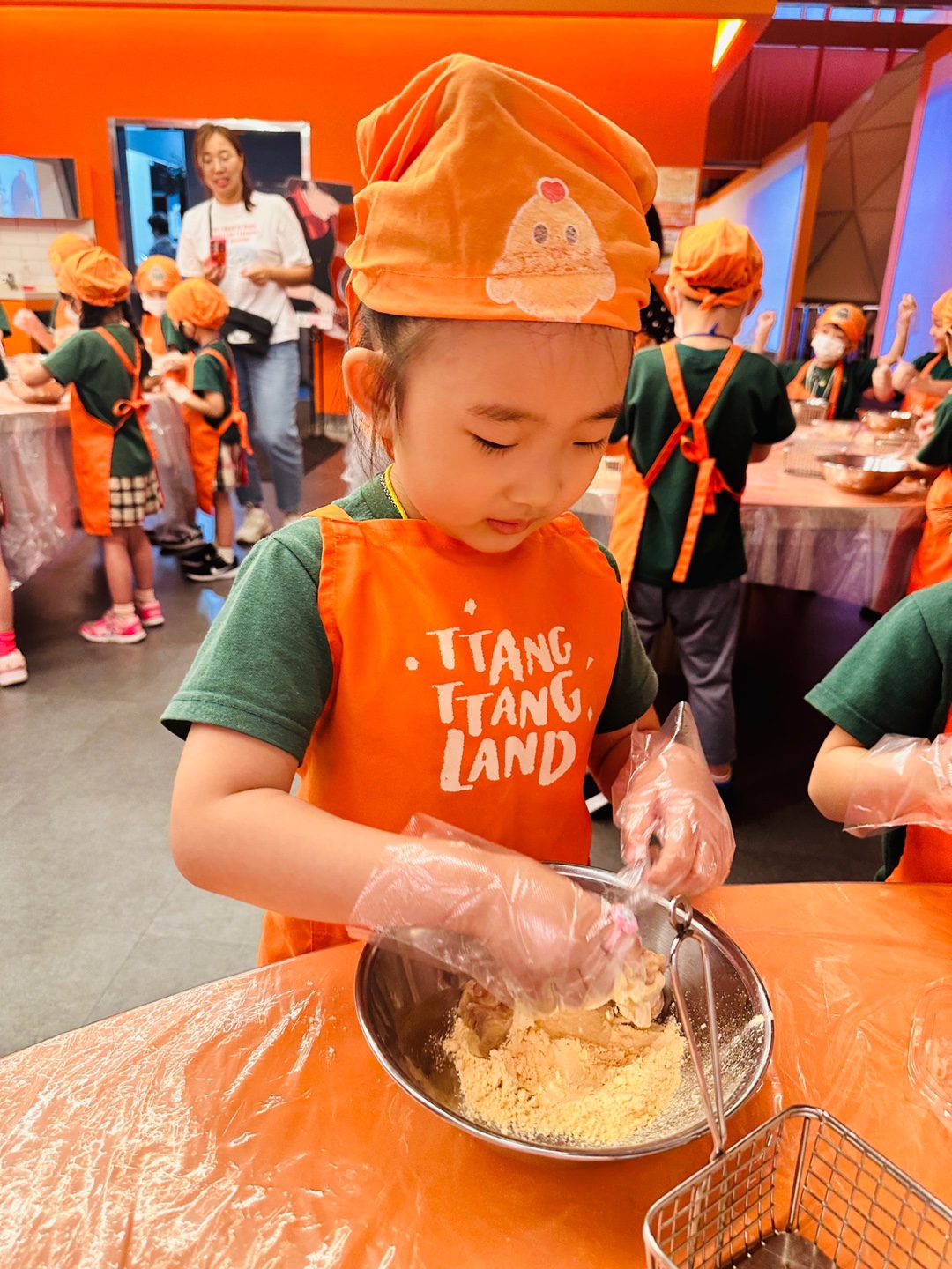 - 사업/행사명 : 땅땅치킨랜드 견학 - 기간/일시 : 2023년 9월 8일 - 내용 : 땅땅치킨랜드로 견학을 가 치킨이 만들어지는 과정과 설명을 듣고 직접 치킨 반죽을 만들어 보고 생육을 넣어 버무려보았습니다. 튀기는 과정을 유리 창문 넘어 에서 관찰해보며 먹는 즐거움만 있던 치킨을 직접 만들어 보는 재미난 체험을 해보았습니다. |