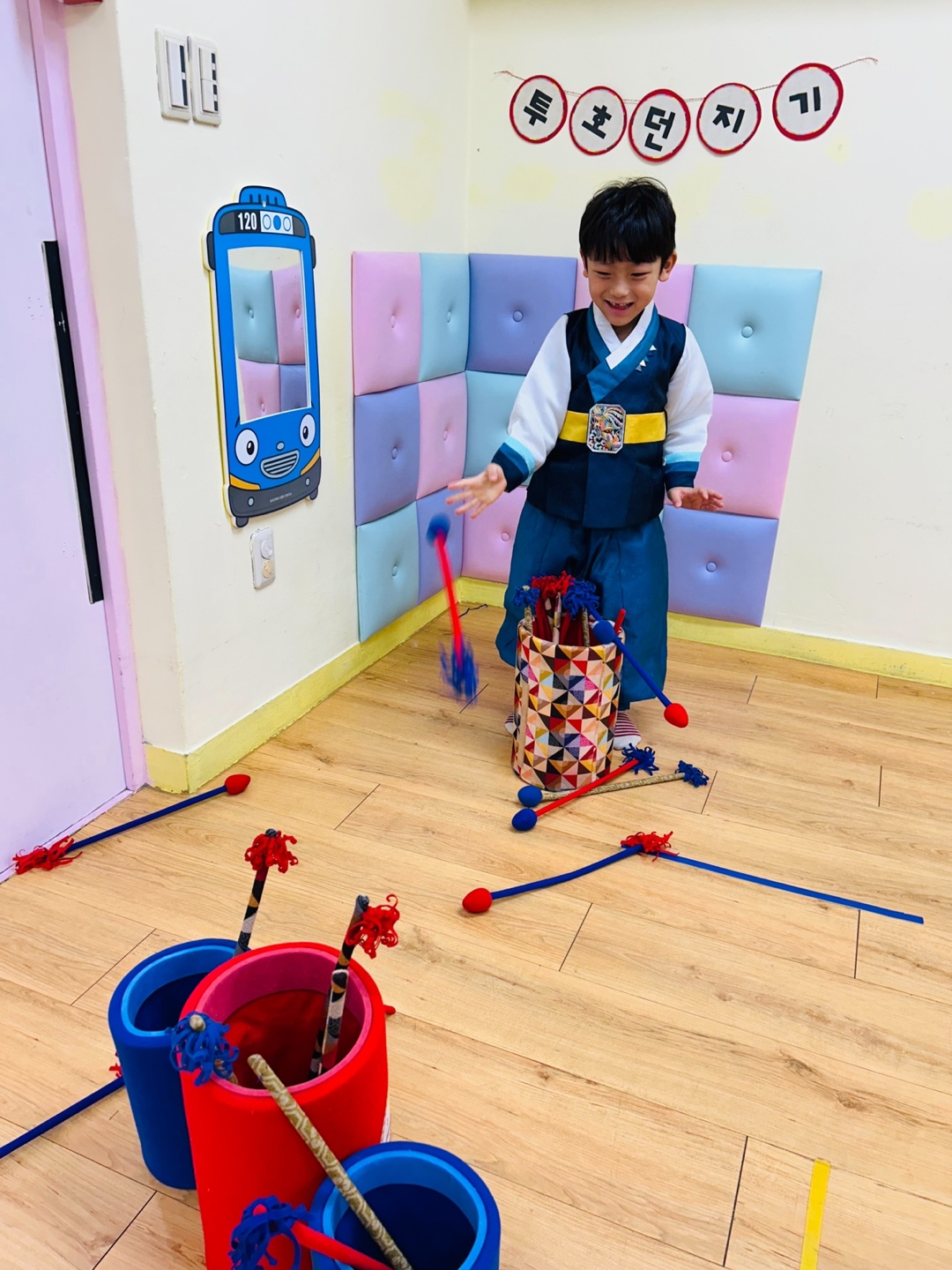 - 사업/행사명 : 스페셜데이 <설날 대잔치> - 기간/일시 : 2024년 2월 7일 - 내용 : 우리나라 고유 명절 ‘설날’을 맞이하여 예쁜 한복을 입고 등원하여 전통놀이를 경험해보며 다양한 신체 활동을 해보았습니다. 그리고 머릿수건과 앞치마를 메고 떡국 떡을 스스로 잘라보고 설날 음식을 접해보며 즐거운 시간을 보내 보았습니다. |