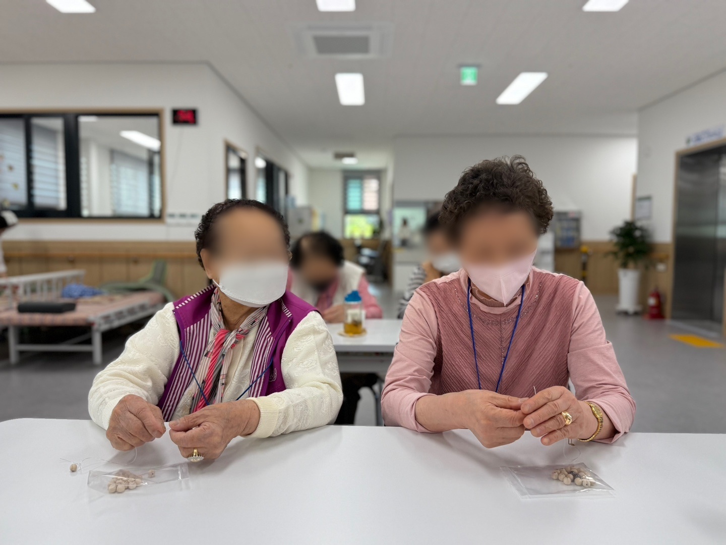 - 사업/행사명 : 찾아오는 환경 교실 - 기간/일시 : 2025. 04. 29(화) 13:30-15:10 - 내용 오늘 최정산힐링숲에서 어르신들을 위해 기관으로 직접 찾아와 "찾아오는 환경 교실"을 열어주셨습니다. 어르신들은 밴드 체조를 통해 활력을 되찾고, 호흡 명상으로 평온한 시간을 보내셨습니다. 특히 평소 잘 쓰지 않던 근육들을 움직이며 건강해지는 기분을 느끼셨다고 만족감을 표현해주셨습니다. 또한, 마음을 따뜻하게 어루만져 준 아로마테라피와 정성껏 한 알 한 알 꿰어 만든 편백나무 팔찌 만들기는 어르신들의 얼굴에 웃음꽃을 피어나게 했고, 참여하신 모든 어르신들이 즐겁고 행복한 시간을 보내셨습니다. 다양한 프로그램으로 우리 어르신들에게 알찬 시간을 만들어주셔서 감사드립니다. |
