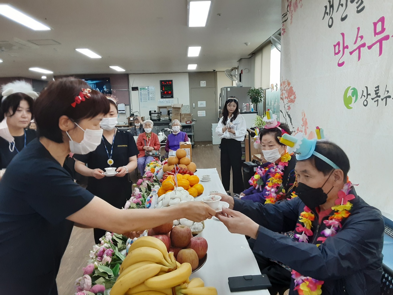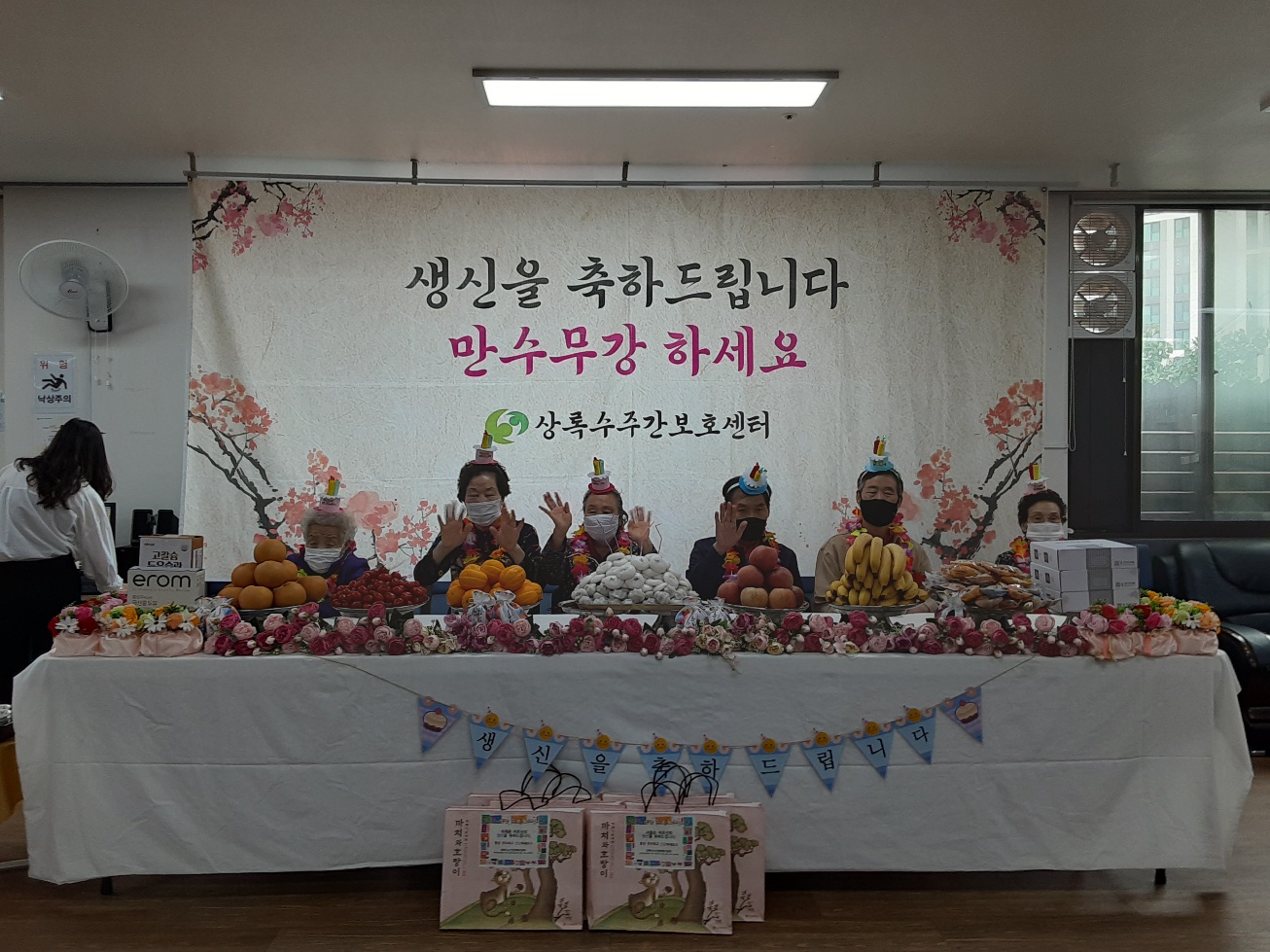 - 사업/행사명 : 생신잔치 - 기간/일시 : 2025. 05. 16. - 내용 상록수노인종합복지센터에서는 5월에 생일을 맞으신 어르신들을 위해 생신상을 차려드렸으며, 여러 어르신들과 종사자들의 축하 인사를 받으셨니다. 생신을 축하하는 의미로 시설장이 생신 대상 어르신께 감주를 대접하는 헌주를 진행함에 따라 생신인 어르신들께서 감격하셨습니다. 상록수노인종합복지센터를 이용하는 모든 어르신과 종사자는 생신을 맞이하신 어르신들이 아름다운 노년을 보내시길 위하는 마음으로 만수무강을 기원하였습니다. |