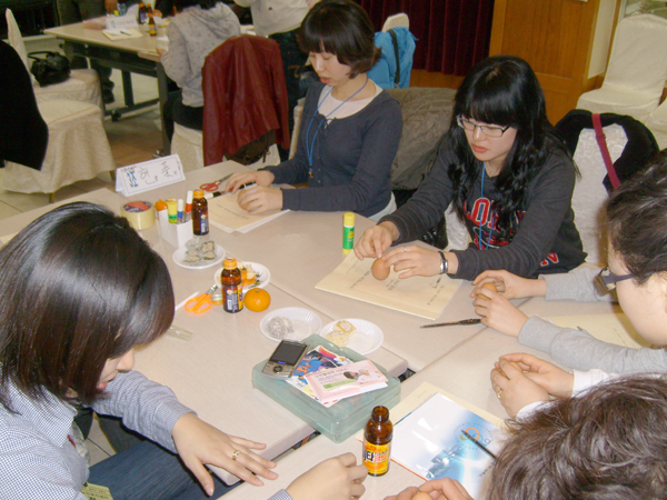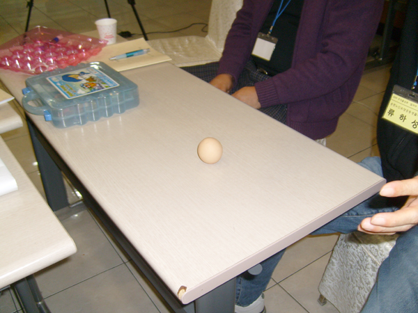 다들 계란 하나씩을 들고 열심히 세우고 있죠.