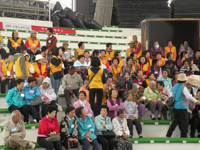 ![]() 식사 전 야외공연장에서 대기하시는 어르신들의 모습...