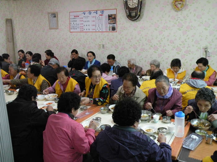 ![]() 잠시후.. 식당으로 옮겨서 어르신들의 식사가 시작되었습니다..