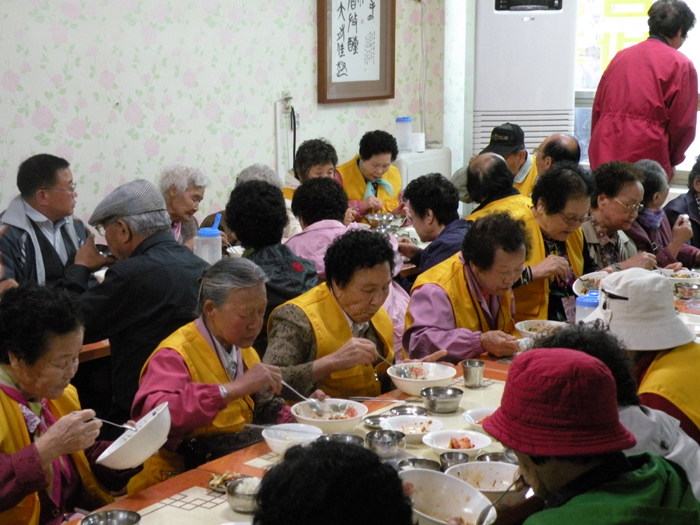 ![]() 사진기로 어르신들의 식사하시는 모습을 바라보고 있으려니... 침이 꿀꺽!!