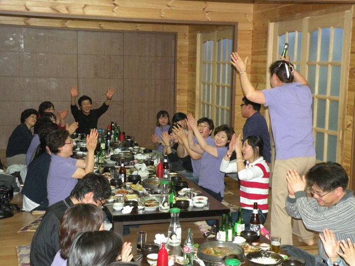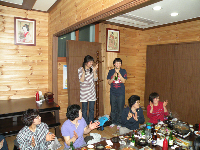 자 이제 볼링대회가 끝나고 장소를 옮겨 평가회(식사)시간을 가져보겠습니다.