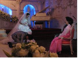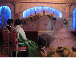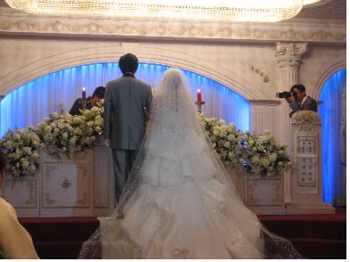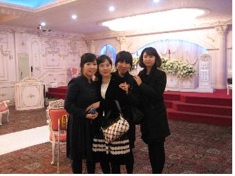 ![]() 일시 : 2009년 11월 22일 일요일 12시 30분 장소 : 의성 궁전예식장 상록수재단 커플 1호 강성호 ♥ 김영미 그동안 모두의 부러움을 사며 예쁘게 사겨왔던 성호쌤과 영미쌤의 결혼식 날이었습니다. 아침부터 모두들 일찍 센터에 도착해서 설레는 마음으로 의성으로 출발했습니다. 가는 동안 축가 연습을 한다고 정신없는(?) 상황이 연출되었습니다. 그렇게 정신없이(?) 출발 한지 1시간 10분 만에 의성 궁전예식장에 도착을 했습니다.^^ ![]() 예식장 안을 배경삼아 우리 재단의 미녀!! 선생님들이 먼저 사진을 찍었습니다. 오늘 따라 우리 선생님들이 너무 예쁘게 꾸미고 왔네요. 신랑 친구들의 마음을 흔들기 위해서 신경을 많이 쓴 모양입니다.^^ ![]() 자~ 오늘의 주인공!!! 신부 대기실의 아리따운 신부의 모습을 보지 않을 수 없겠죠?? 신부 대기실에서 기다리고 있는 신부 김영미 선생님 예쁘죠??^^ 아쉽지만 신랑의 모습은 보이지가 않는군요. ![]() 결혼식이 시작되어 신랑과 신부가 입장을 해서 주례 선생님의 축언을 듣고 있네요. 신랑 강성호 군과 신부 김영미양은 검은머리 파뿌리 될 때까지 서로를 아끼면서 사랑하고 아껴 주며 잘 살 것을 맹세 합니까^^ ![]() ![]() 이제 양가 부모님께 큰절을 올리는 오늘의 주인공들!! 어머님 아버님 싸우는 일 없이 행복하게 잘 살겠습니다. ![]() 결혼식에서 빠질 수 없는 코너~~ 바로 축가겠죠??^^ 의성으로 오기 전까지 차 안에서 우리들을 정신없게(?) 만들었던 미녀 삼총사의 축가가 이어졌습니다. 차 안에서 화음도 넣고 서로 합심하여 열심히 축가를 연습한 우리 미녀 삼총사!!! 노래 실력이 가수가 뺨을 맞고 눈물을 글썽일 정도로 잘 불렀답니다.^^ ![]() 다음은 오늘의 주인공 신랑이 신부에게 축가를 불렀습니다. 신부와 눈을 마주 보면서 떨리는 목소리로 사랑의 세레나데를 부른 신랑!! 신부는 그런 신랑의 모습을 흐뭇(?)하게 미소를 띄면서 감상을 하고 있네요.^^ |