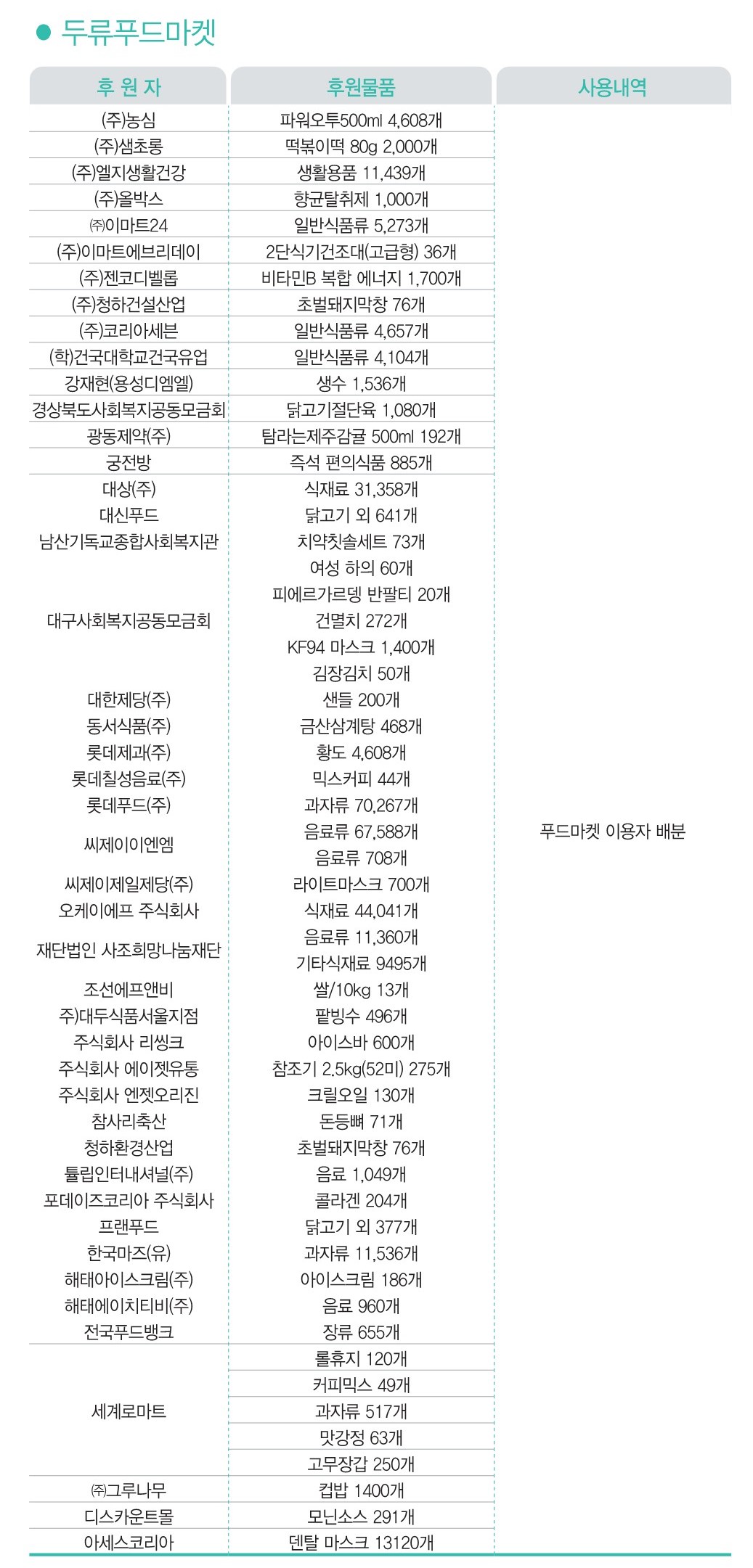 2021년 두류푸드마켓 후원물품 수입 및 사용 내역 공고
