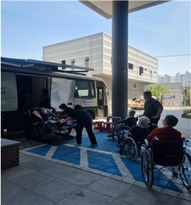 - 사업/행사명 : 2024년 입소 어르신 정기 건강검진 - 기간/일시 : 2024. 5. 22.(수) - 내용 : 감염병 예방과 어르신들의 건강한 일상을 위해 상록수실버타운은 매년 건강검진을 진행합니다. 올해 건강검진은 M병원과 연계해 진행되었으며, 총 110여명의 어르신들이 건강검진을 수검하셨습니다. M 병원의 첨단장비와 모든 종사자 선생님들의 노력에 힘입어 매끄럽게 오전중에 모든 어르신들이 검진을 마칠 수 있었습니다. 야외 X-rat 촬영 버스를 타는 어르신들이 신기하다며, 세상 좋아졌다며 한마디씩 보태주셨습니다. 어르신들의 건강하고 행복한 일상을 위해 최선을 다하는 상록수실버타운이 되겠습니다. |