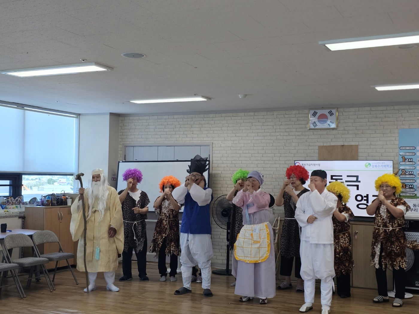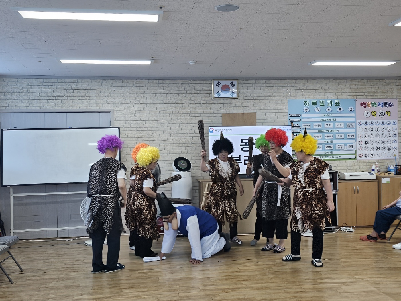 - 사업/행사명 : 성서노인종합복지관 달서구노인문화대학 연계 동극공연 관람 - 기간/일시 : 2024. 7. 30.(화) - 내용 이번 시간에는 특별한 손님들이 찾아오셨습니다. 금나와라 뚝딱! 은나와라 뚝딱! 이름만 들어도 오들오들 무서운 도깨비 손님들이 상록수기억학교로 방문하셨습니다 ^^ 바로 성서노인종합복지관의 시니어봉사과 학생들인데요. 열심히 연습하신 동극 ‘혹부리영감’을 실감나게 연기해주셨습니다. 혹부리영감님과 도깨비, 산신령님과 함께 큰 웃음이 가득한 하루가 되었습니다. 멋진 공연으로 저희 학교를 빛내주신 성서노인종합복지관 달서구노인문화대학 여러분들에게 감사드리며, 앞으로도 좋은 인연 이어나갈 수 있었으면 좋겠습니다! |