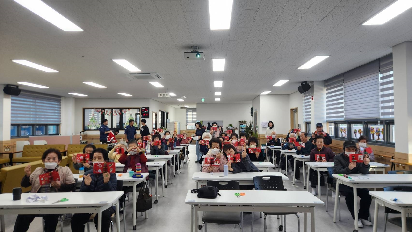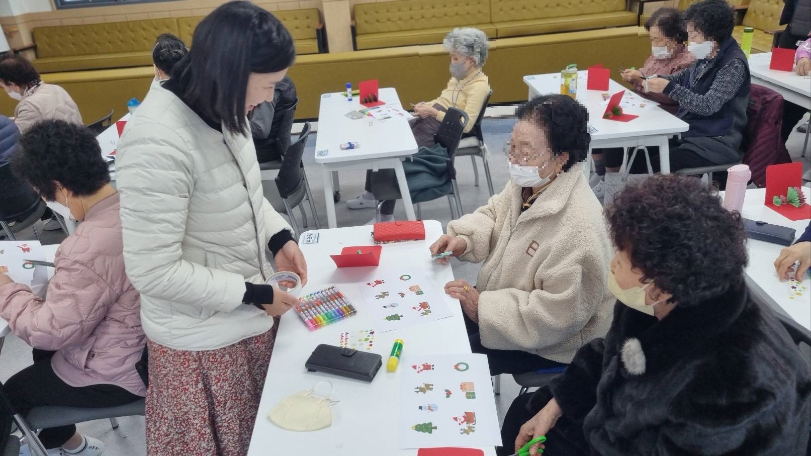 - 사업/행사명 : 상록수기억학교 - 크리스마스특별프로그램 - 기간/일시 : 2024. 12. 26(목) 13:30~15:10 - 내용 상록수기억학교에서는 오늘 크리스마스이브를 맞아 특별한 시간으로 어르신들과 함께 크리스마스 입체카드를 만들어보는 활동을 진행하였습니다. 선생님의 설명을 듣고, 옆에 앉으신 어르신들과 도란도란 이야기를 나누며 색종이를 지그재그로 접고, 자르고, 붙이다 보니 어느새 멋진 입체카드가 완성되었습니다. 완성된 카드를 보며 "참 예쁘다!"고 감탄하시는 어르신들의 얼굴에는 뿌듯한 미소가 가득했습니다. 정성껏 손글씨로 편지를 써 넣고, 소중히 가방에 넣어 집으로 돌아가시는 어르신들의 발걸음은 오늘따라 더욱 힘차고 행복해 보였습니다. 오늘 만든 카드를 통해 어르신들의 따뜻한 마음이 온전히 전달되길 바래봅니다 |