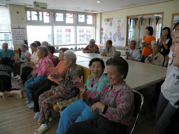 ![]() 어르신들 즐거우신지? ㅎㅎ 노래장단에 맞춰 박수를 키고 계시는 모습!! ^^*