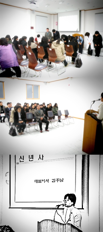 2011년 1월 4일(화) 17시 송현노인그룹홈에서 2011년 상록수재단 시무식이 실시되었습니다.한 해를 맞이하여 새로운 상록수재단의 각오를 다지며, 새해 인사와 덕담을 나누는 자리가 되었습니다. 올 한해도 열심히 뛰는 상록수가 되겠습니다.