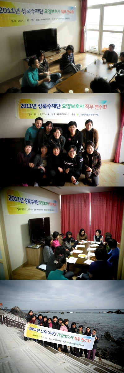 2011년 1월 17일(월)~19일(수) 3일간을 걸쳐 2011년 상록수재단 요양보호사 직무연수를 실시하였습니다.1차,2차 두차례를 걸쳐 진행된 직무연수는 서비스의 질적향상과 업무협조 팀간의 소통, 직원의 바람직한 자세 등을 주제로 보다나은 대상자서비스케어의 효율적인 방안을 모색하며 직원간의 관계를 돈독하게 하는 뜻깊은 자리가 되었습니다.