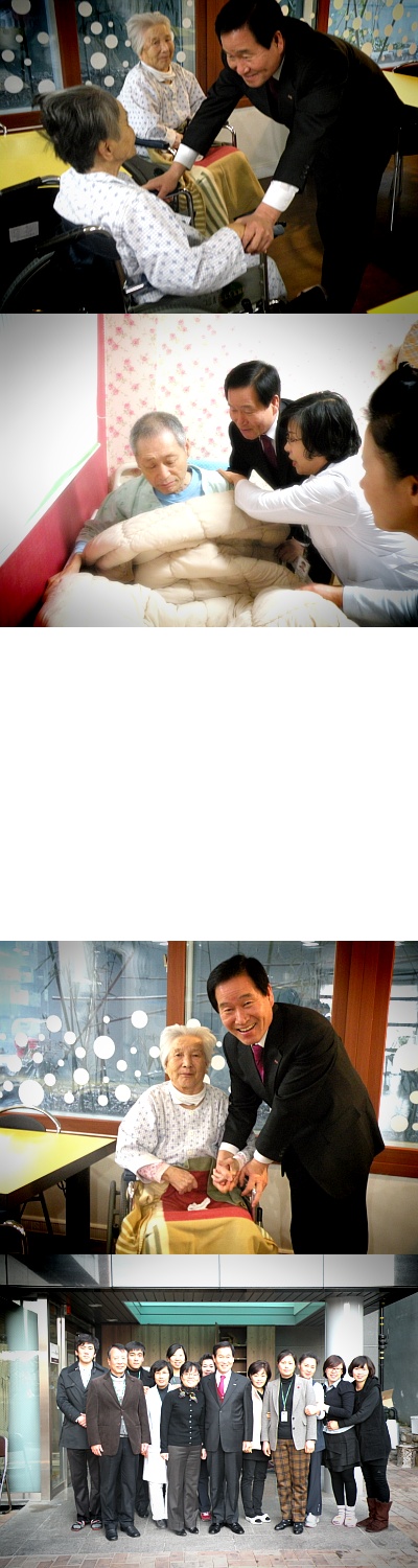 2011년 1월 20일 설명절을 앞두고 달서구청장 기관 방문이 있었습니다. 시설입소 어르신 분 한분 손을 잡고 새해인사와 건강을 기원하며 어르신들의 마음을 위로해 주었습니다. 귀한 시간을 내어 방문해 주신 구청장님과 구관계자들께 감사드립니다. |
