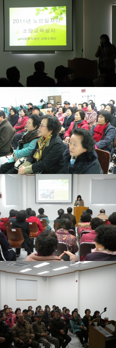2011년 노인일자리 소양교육이 3월 9일(수) 15시 송현노인그룹홈에서 실시되었습니다. 본 격적인 노인일자리 업무가 시작되기전 " 노인일자리 사업에 임하는자세"라는 주제로 소양교육이 실시되었습니다.